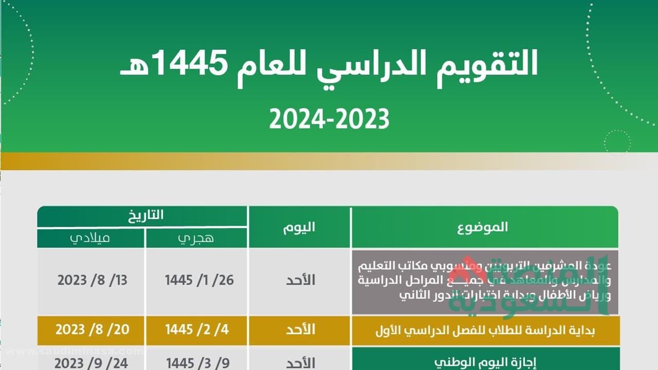 التقويم الدراسي للعام الجديد 1445